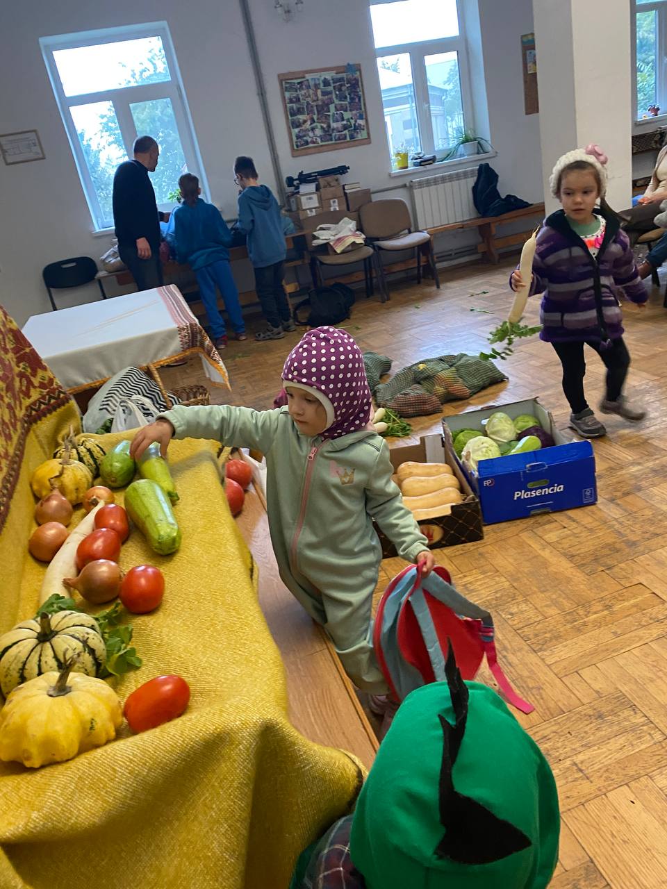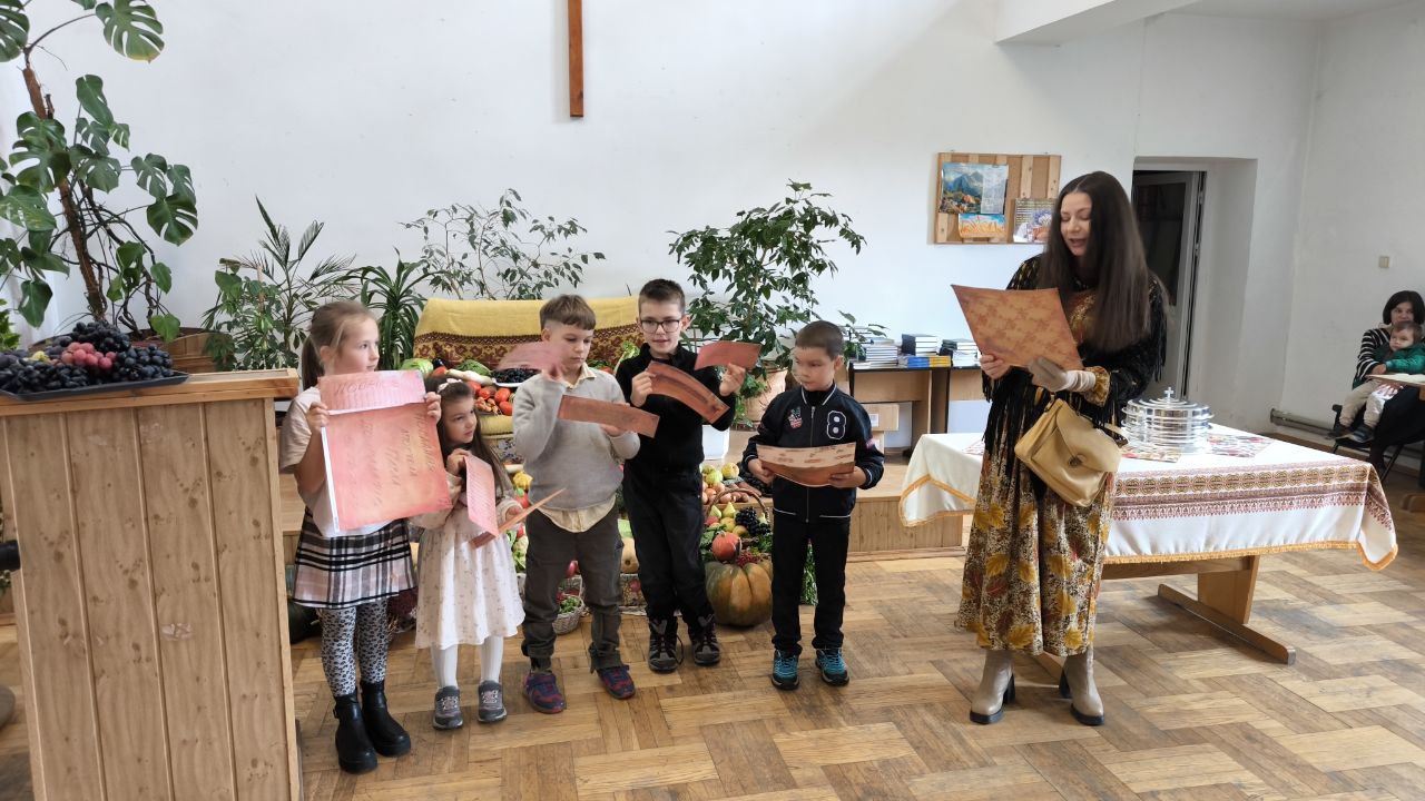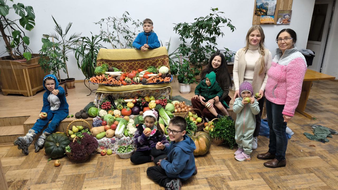 The month of October has always been a special month. Traditionally in the first half of October, we celebrate Thanksgiving Day (or Harvest Day). This is a day when we specifically focus on giving thanks to the Lord for all His bountiful mercies and generosity. As an illustration of God's magnanimity and care, the day before we usually prepare a special colorful display of various fruits and vegetables grown in our area. And this time, the process of preparing this display was very special when the children of our church actively participated in its creation. For them, it was an expressive display of creative activity, and they did it with great enthusiasm and excitement. Of course, adults participated as well, supervising the process and adding certain touches. As a result, the display turned out to be the largest and the brightest in recent years.