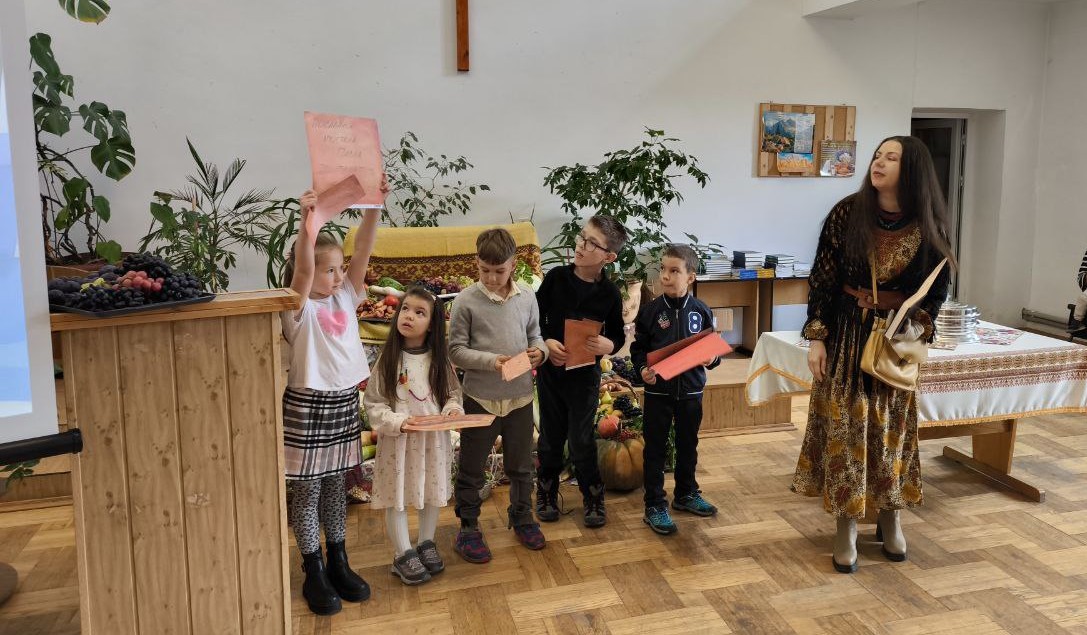 The holiday itself fell on October 12, and on this day there was a positive atmosphere of gratitude to our Lord and celebration of His love. We had many guests, and they were pleasantly surprised by what they saw and heard. After the worship service, our children gave a short presentation on the fruit of the Spirit under Olya's guidance. Their performance was a special reminder of the importance of the fruit of the Spirit, as the apostle Paul wrote in the Epistle to the Galatians (Gal. 5:22,23). The next part of our celebration was a group photo around the stand, for which many takes were needed, and it was sometimes very funny)). And in the end, we turned out quite beautiful…